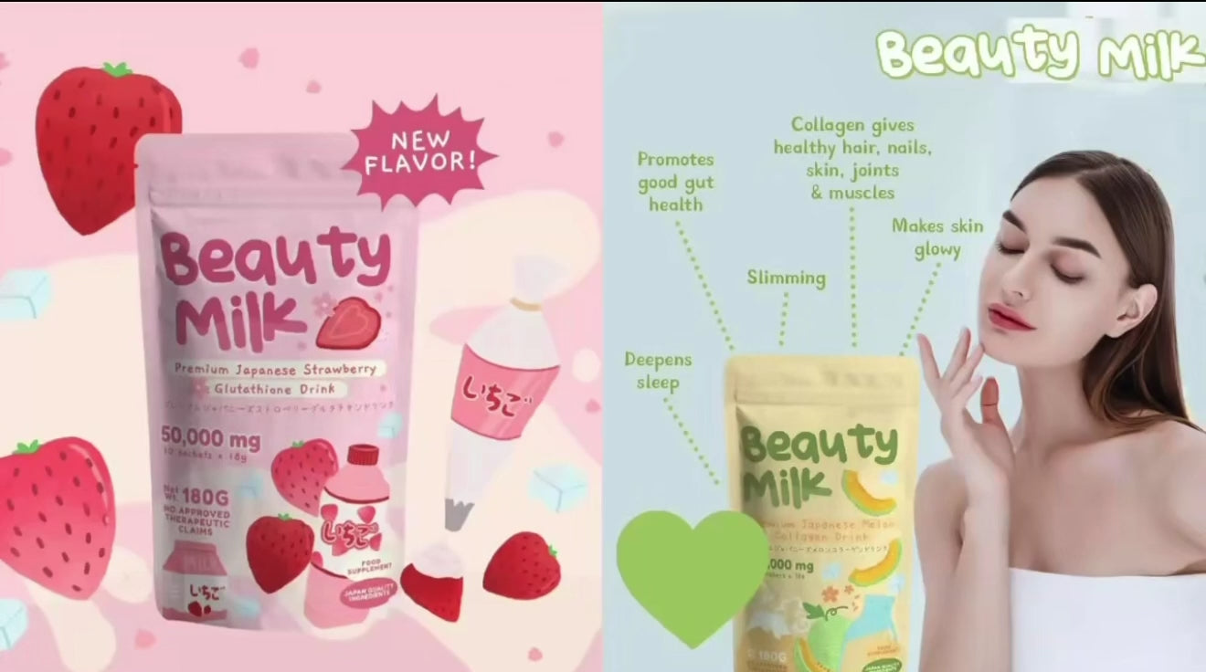 Boisson au lait de fraise japonaise, milk avec Collagener Marin. Pour une belle peau